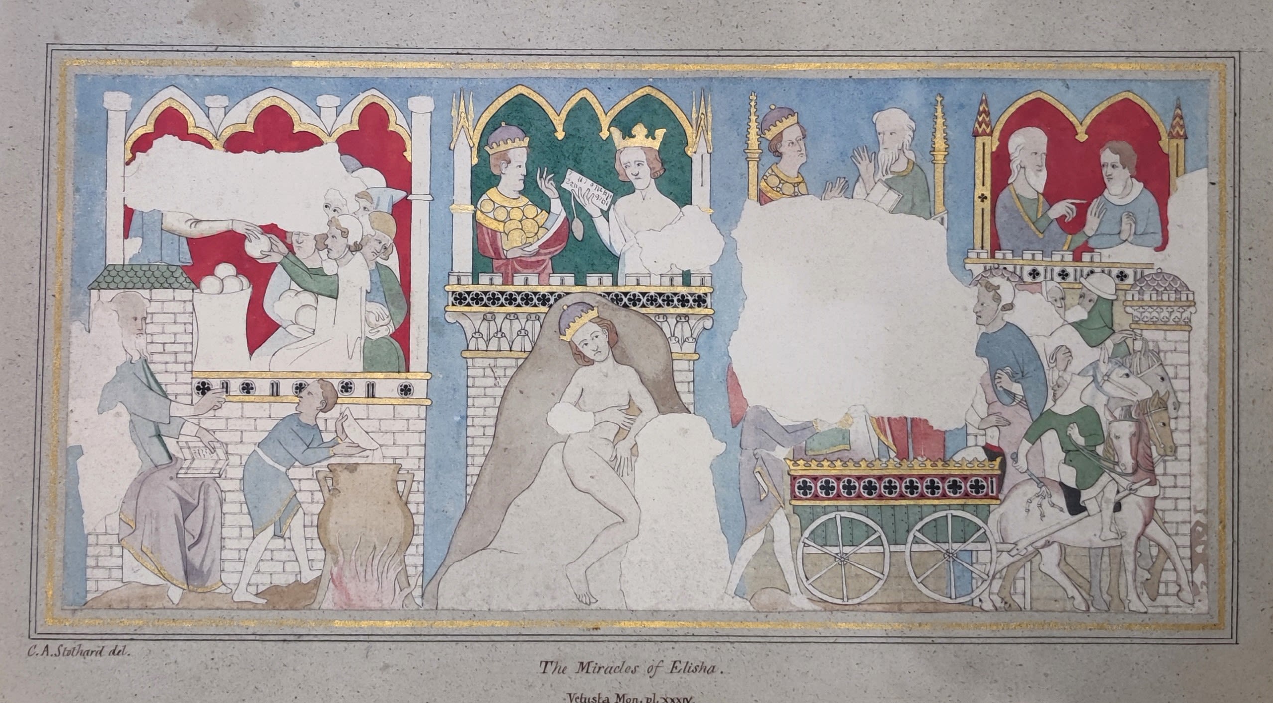 Charles Stothard, The Miracles of Elisha (from Westminster’s Painted Chamber), 1819, watercolour with gold leaf detail on paper